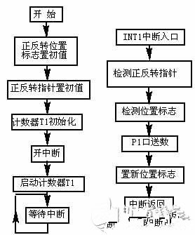 在程序的编制中,要特别注意步进电机在换向时的处理。为使步进电机在换向时能平滑过渡,不至于产生错步,应在每一步中设置标志位。其中20H单元的各位为步进电机正转标志位;21H单元各位为反转标志位。在正转时,不仅给正转标志位赋值,也同时给反转标志位赋值;在反转时也如此。这样,当步进电机换向时,就可以上一次的位置作为起点反向运动,避免了电机换向时产生错步。