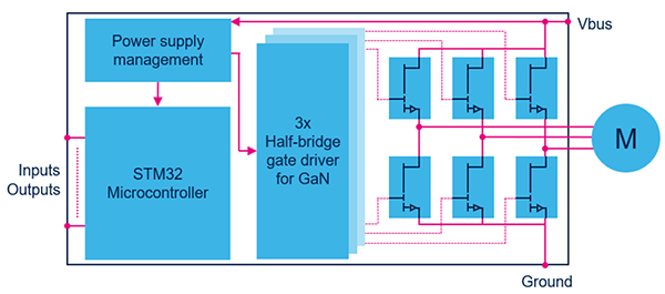 图1. 基于 GaN 晶体管的逆变器的简化框图