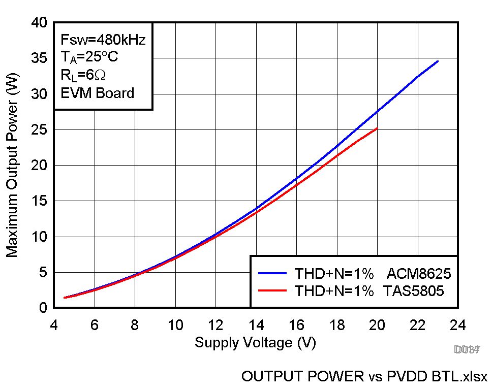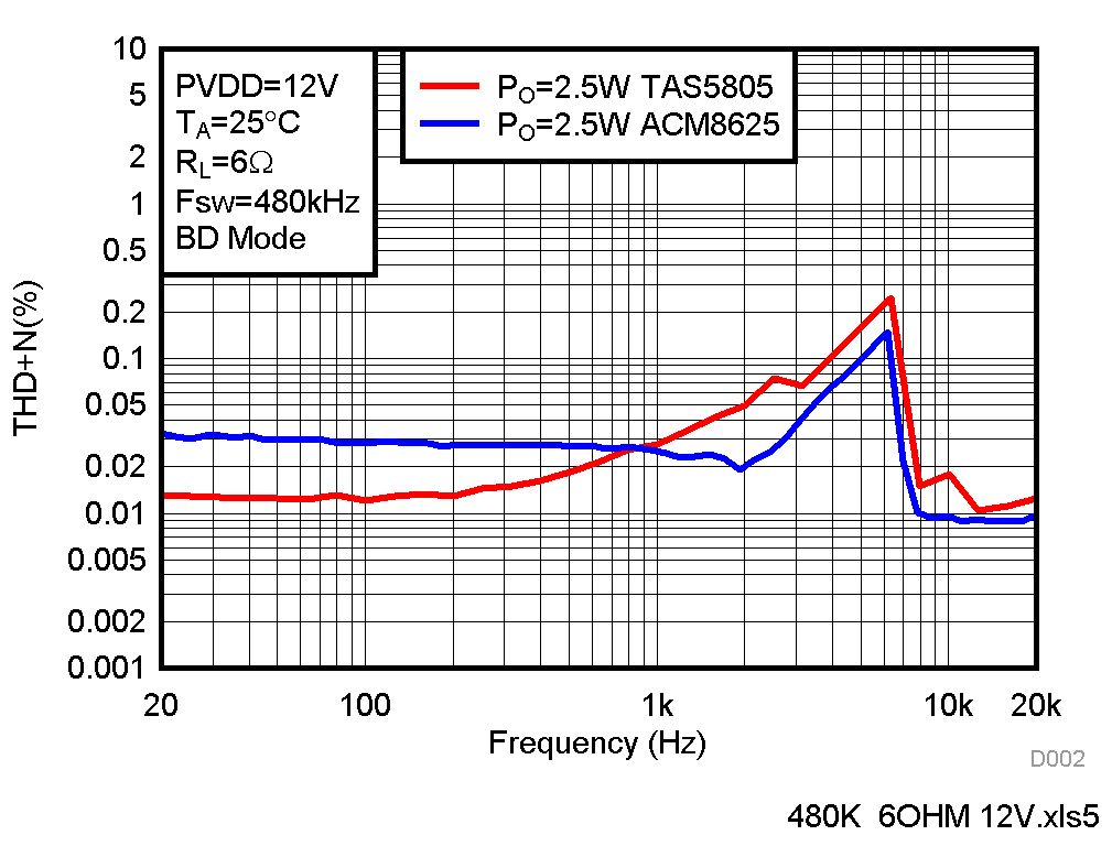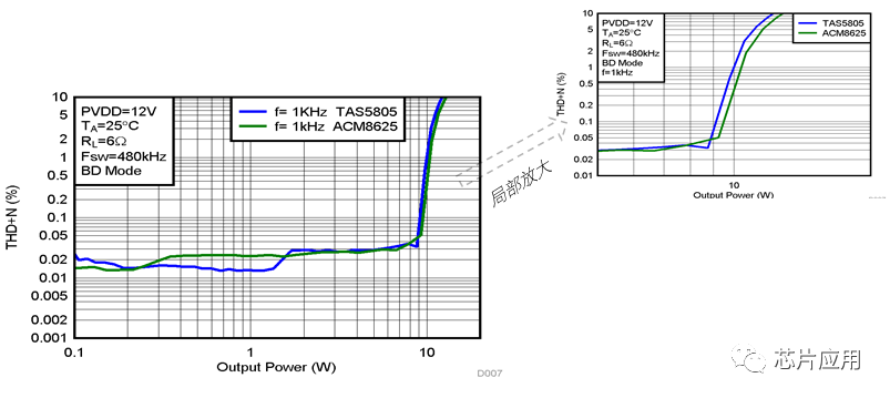 TAS5805这颗更是中功率段比较好的选择,基本工具都有,也赢得了市场的认可。只是目前这个共需行情下,加上TI对国际客户的侧重支持,导致国内很多客户比较受伤。对于受伤的客户,可以试试ACM8625这颗料,难得可贵的是做到了性能上不打折,也有很多实用性的创新,符合本土化的要求。可以展示一些相同条件下跟TI的对比。