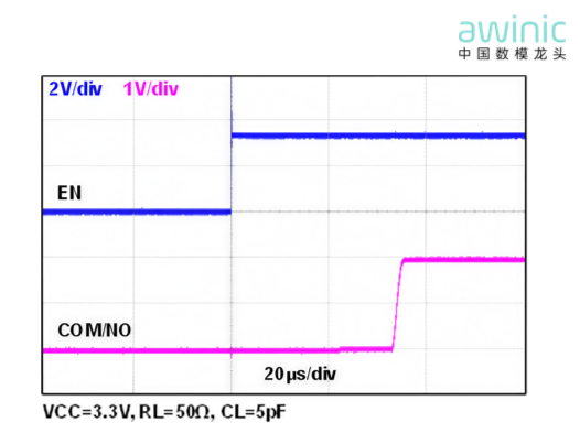 AW35331FDR的通道打开时间仅35us,可以快速切换信号。